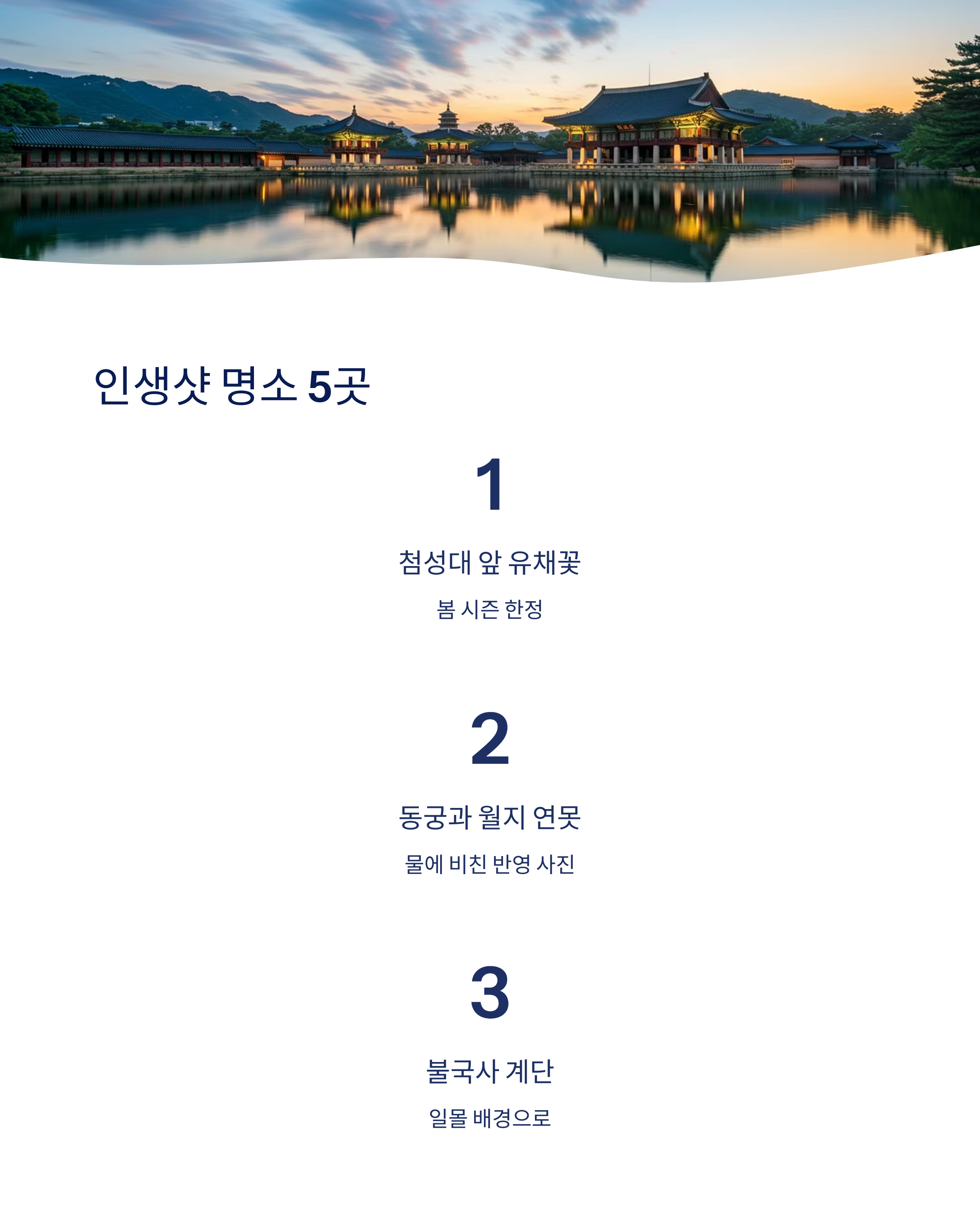 요즘 여행에서 빠질 수 없는 건 바로 인스타용 사진이죠! 경주는 그 자체로 사진 맛집이에요. 특히 해 질 무렵의 동궁과 월지, 석양 비추는 불국사의 돌계단, 석굴암 가는 숲길… 하나하나가 전부 영화 장면처럼 예쁘답니다.