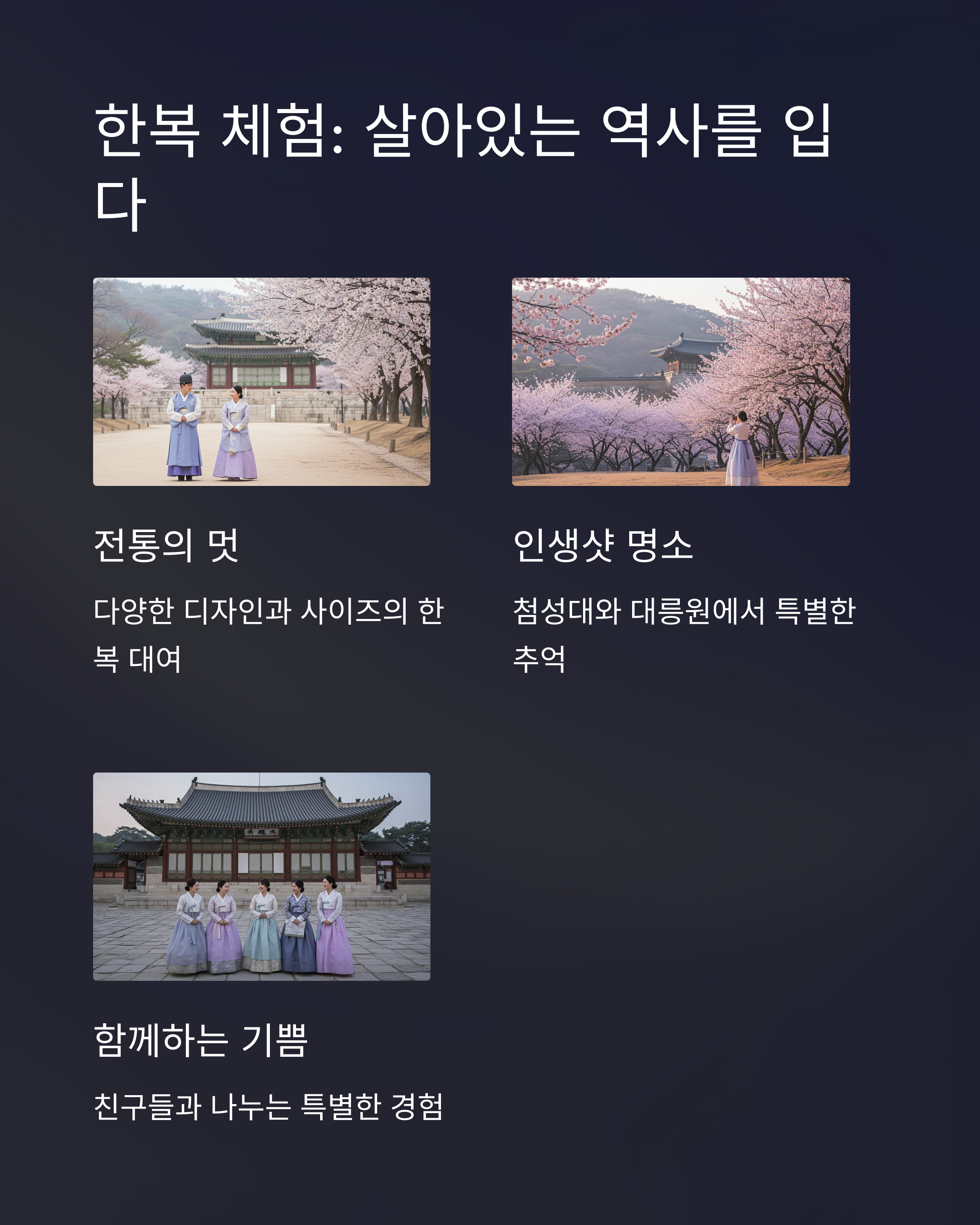 경주의 고풍스러운 거리에서 한복을 입고 걷는 건 그 자체로 시간여행이에요. 황리단길과 교촌한옥마을 주변에는 전통 한복 대여점이 많고, 머리 장식까지 완벽하게 갖춰주는 곳도 있어요. 저는 옛날 귀족 스타일 한복을 입어봤는데, 사진마다 인생샷! 게다가 전통 공예 체험도 할 수 있어서, 나무 도장 만들기나 전통 부채 그리기 같은 건 아이와 함께해도 좋겠더라구요.