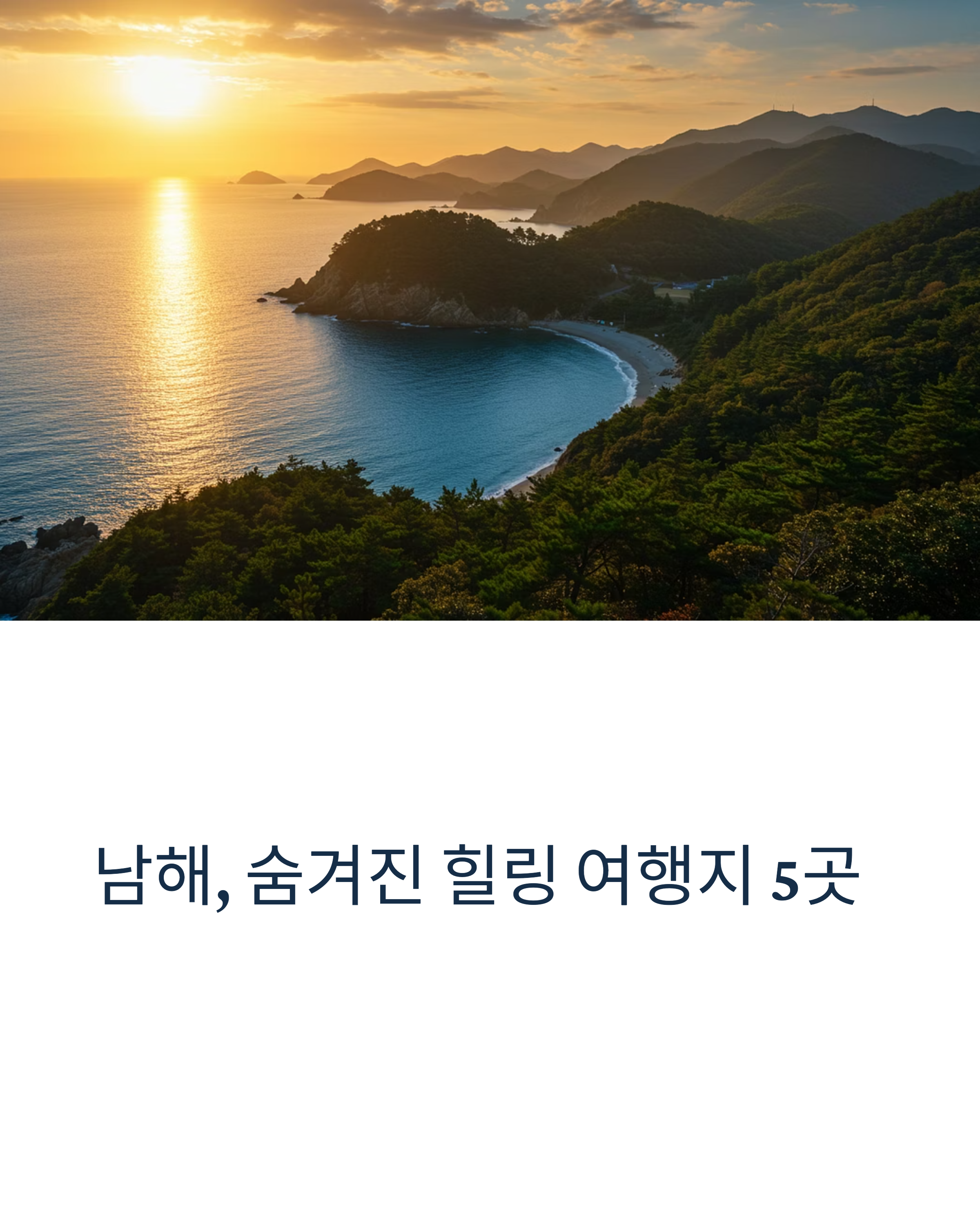 안녕하세요, 여러분. 저는 지난달에 지친 몸과 마음을 회복하기 위해 남해로 짧은 여행을 다녀왔어요. 단지 ‘힐링’을 위해 떠났던 그 여정이, 생각보다 훨씬 더 큰 위안을 안겨줬답니다. 남해에는 아직 널리 알려지지 않은 평화로운 장소들이 정말 많아요. 이 글에서는 제가 직접 다녀온 곳 중에서 진짜 ‘쉼’을 느낄 수 있었던 5곳을 엄선해 소개해보려고 해요. 지금 떠나고 싶은 마음이 들 수도 있으니, 준비되셨다면 천천히 따라와 주세요.