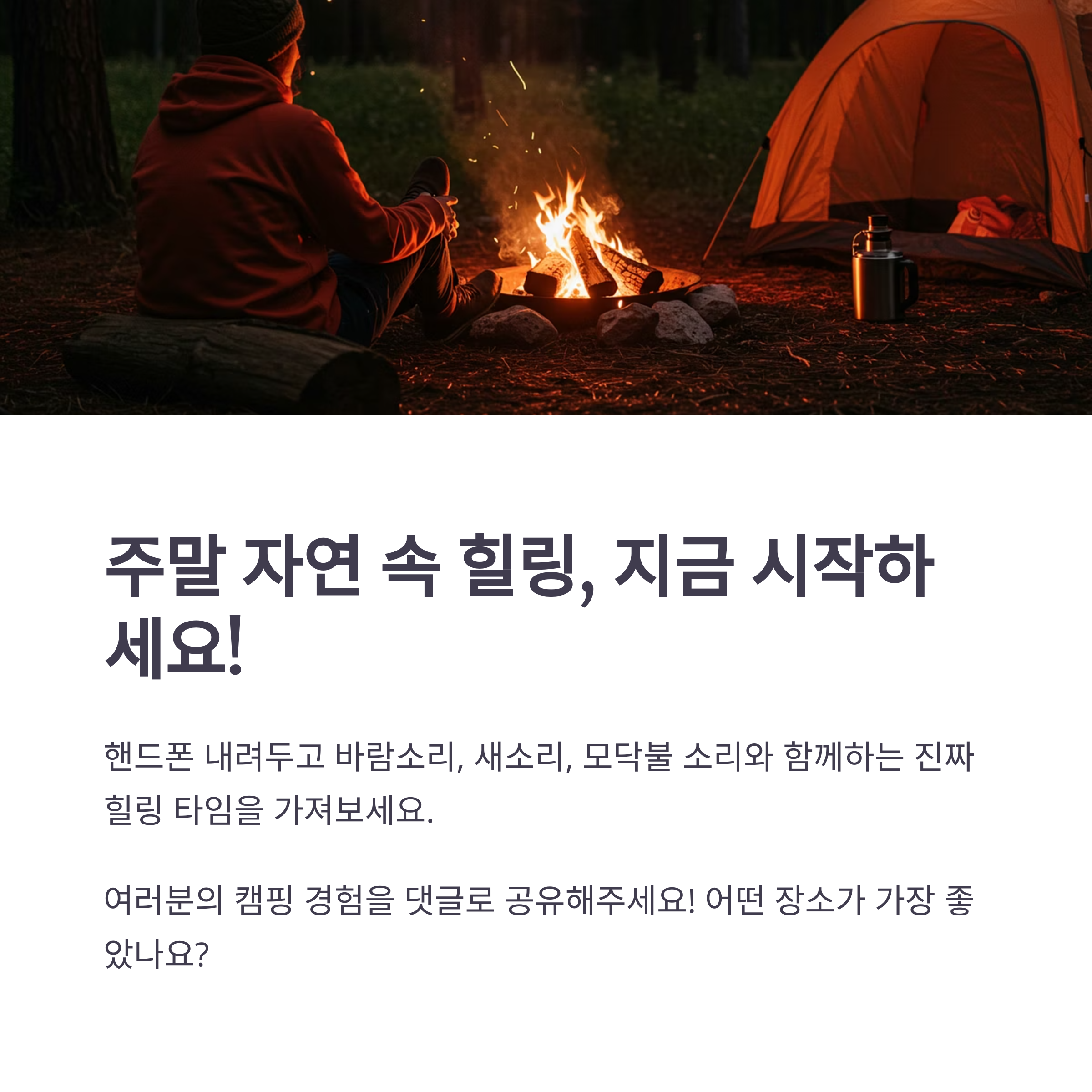 오늘 소개한 캠핑 명소들, 마음에 드셨나요? 사실 저도 정리하면서 ‘다음 주엔 어디로 갈까?’ 하고 또 설레기 시작했어요. 가까운 곳에서 자연과 함께하는 하루, 그게 바로 삶의 여유 아닐까요? 여러분도 이번 주말엔 핸드폰 내려두고 바람소리, 새소리, 모닥불 소리와 함께하는 진짜 힐링 타임 가져보세요. 그리고 다녀오신 후엔 어떤 장소가 가장 좋았는지 댓글로 공유해 주시면 저도 다음 계획 세우는 데 큰 도움이 될 것 같아요!