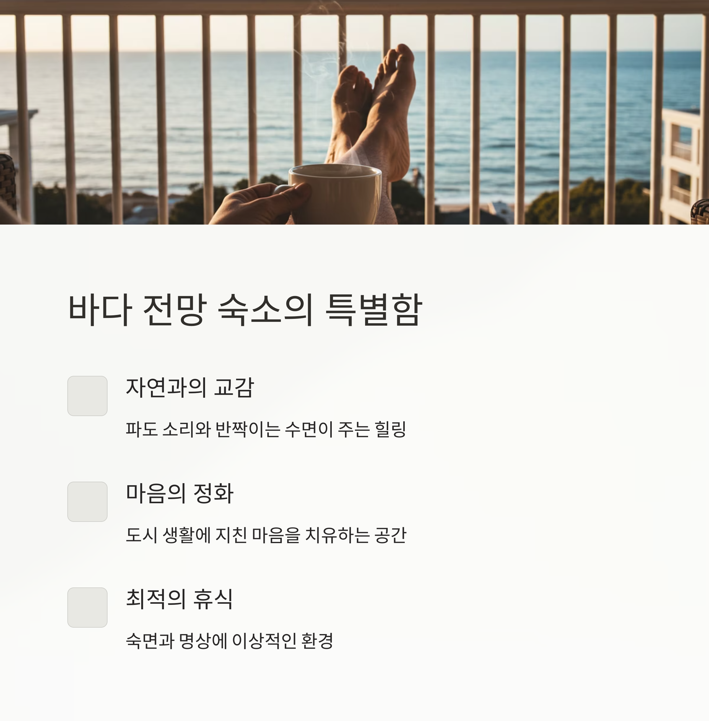 바다 전망 좋은 숙소 추천, 바다를 품은 쉼터 본문