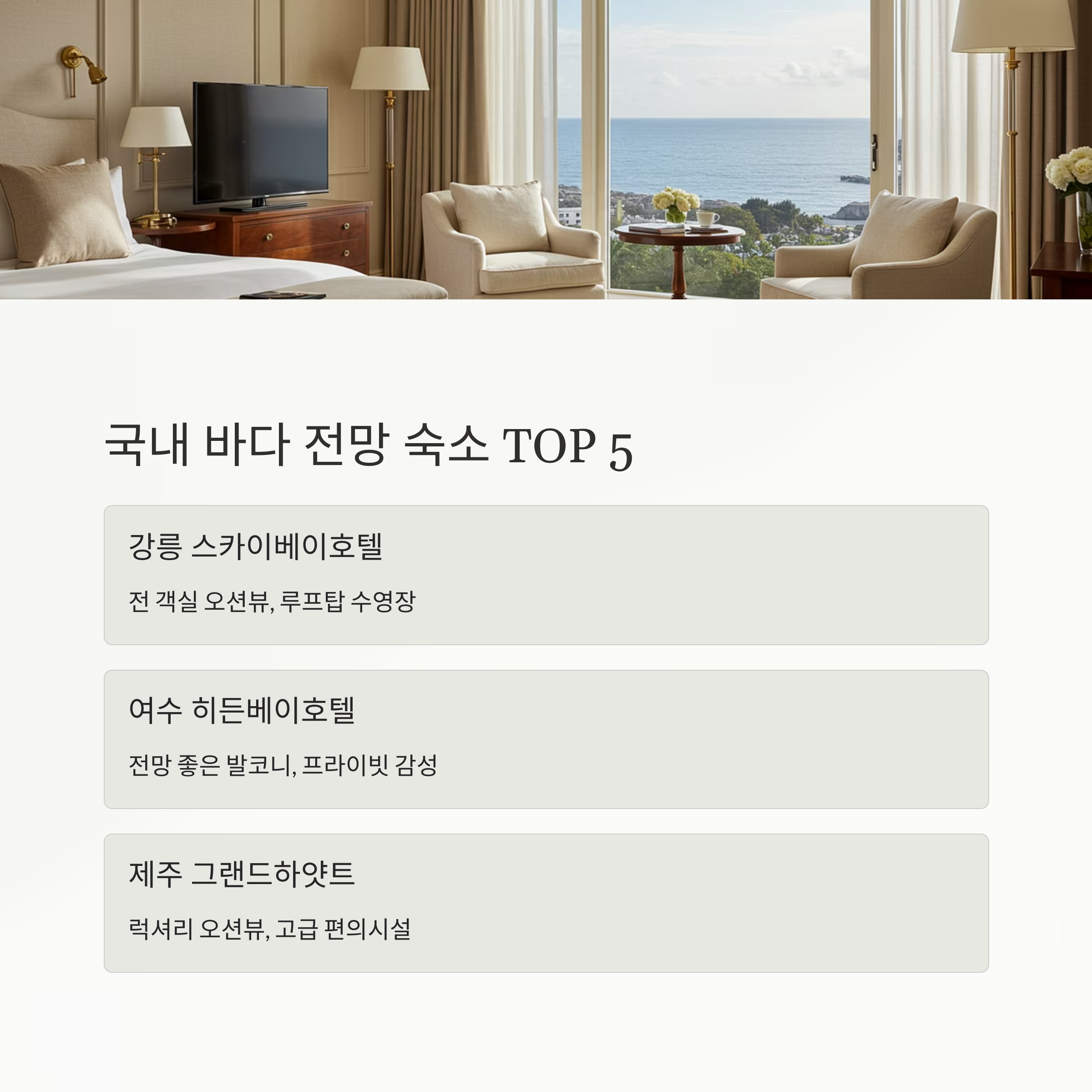안녕하세요, 여러분! 최근에 정말 바빴던 일상 속에서 잠시라도 숨을 돌릴 곳이 간절하게 필요하더라고요. 그래서 충동적으로 떠난 여행에서 마주한 ‘바다 전망 숙소’는 제게 큰 위로가 되었답니다. 거실 창문 너머로 펼쳐지는 끝없는 푸른 바다, 해질녘 물드는 하늘, 밤엔 별빛 아래 들려오는 잔잔한 파도 소리까지. 이 감동을 여러분과 꼭 나누고 싶었어요. 오늘은 저처럼 쉼이 필요한 분들을 위해 ‘바다를 품은 숙소’들을 소개해 보려 합니다. 기대해 주세요!