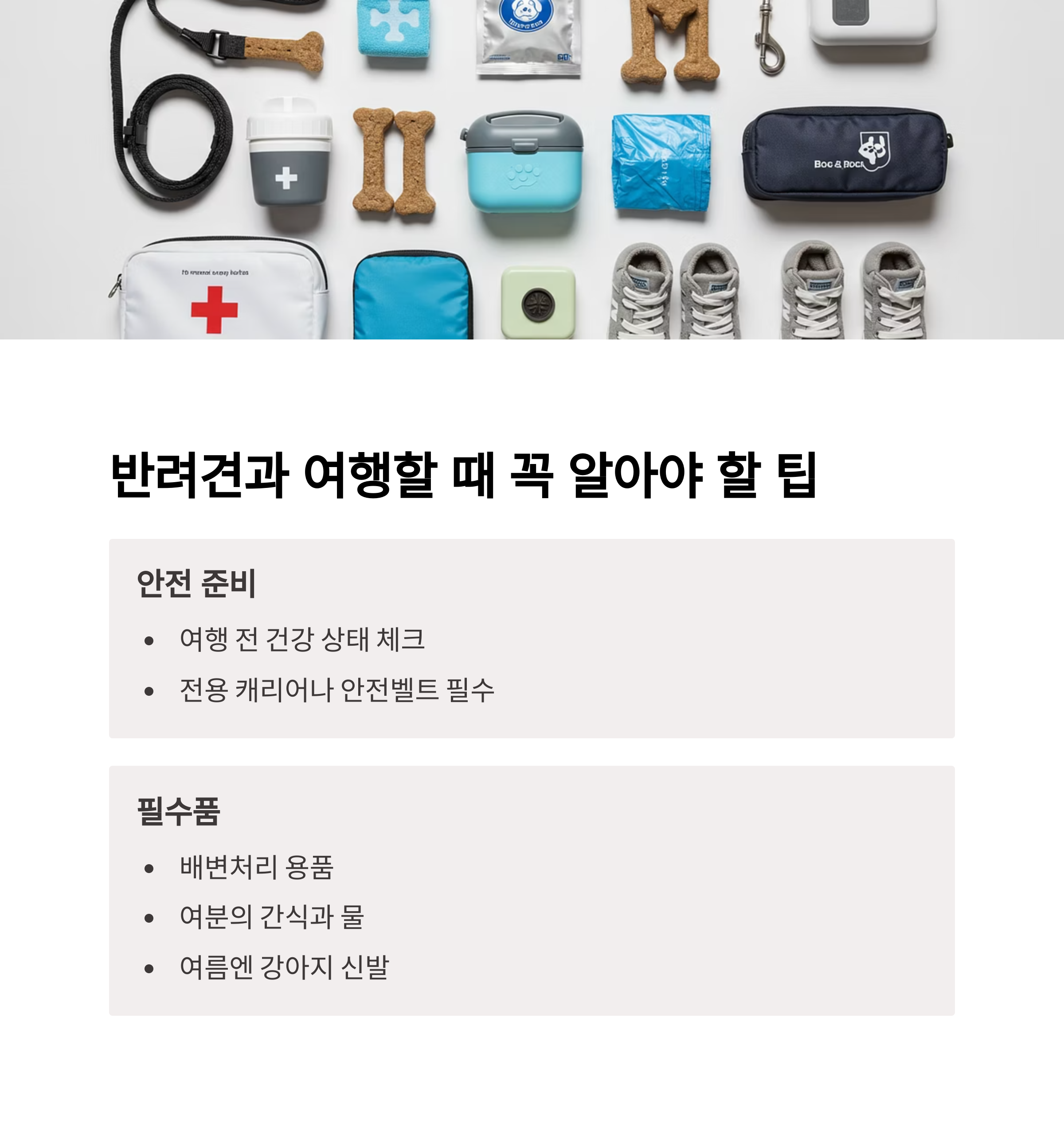 - 여행 전 건강 상태 체크 및 동물병원 정보 확보
