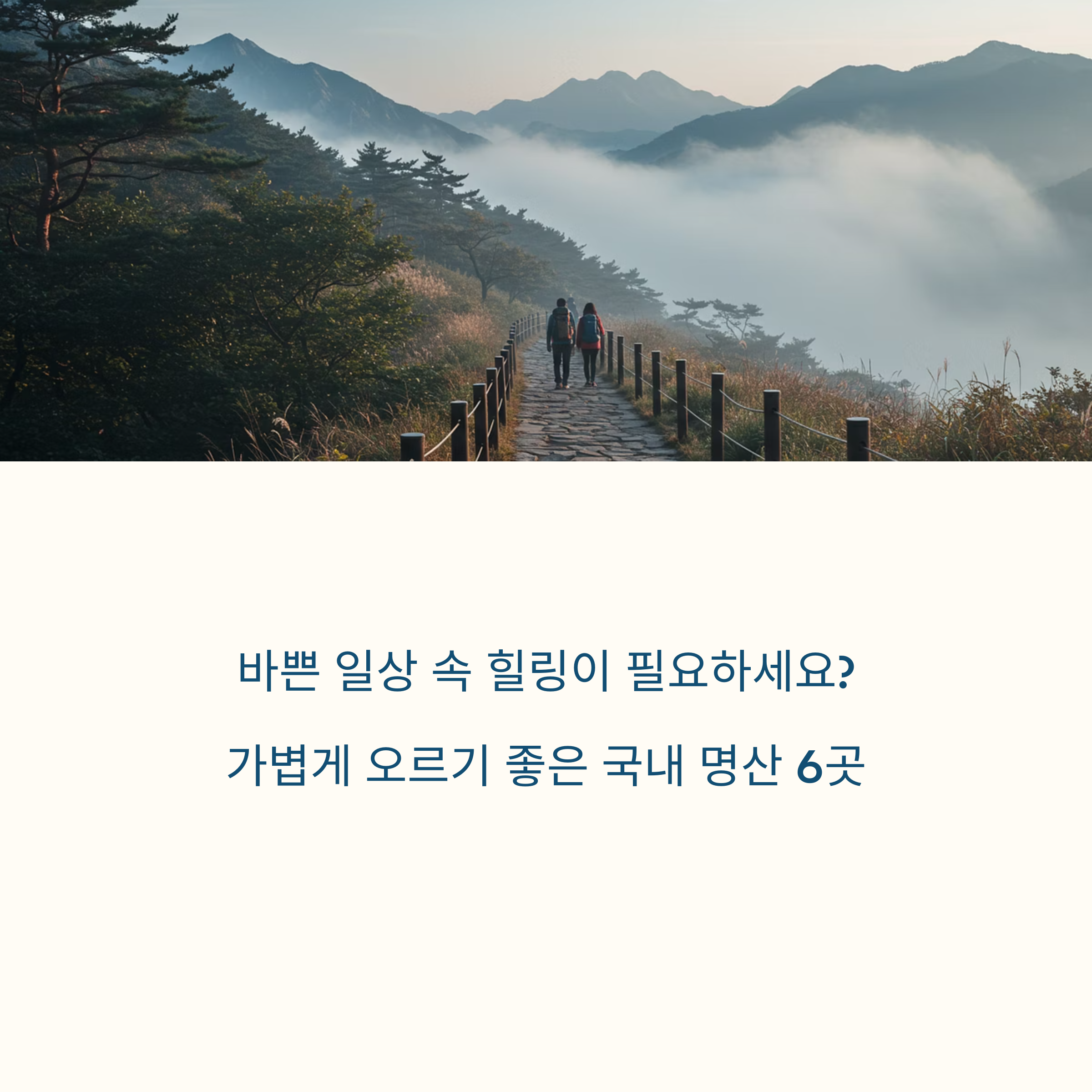 안녕하세요, 여러분! 요즘 날씨 정말 좋지 않나요? 햇살 좋은 주말이면 몸이 근질근질해서 밖으로 나가고 싶어지는 건 저만 그런 건 아닐 거예요. 사실 얼마 전, 친구랑 가볍게 다녀온 산이 너무 인상 깊어서 오늘은 여러분께도 꼭 소개해드리고 싶었어요. 험한 등산 말고, 도시 근처에서 편하게 오를 수 있는 국내 명산들을 정리해봤답니다. 저처럼 초보자분들이나 가족, 연인끼리도 부담 없이 다녀올 수 있는 곳들로요!