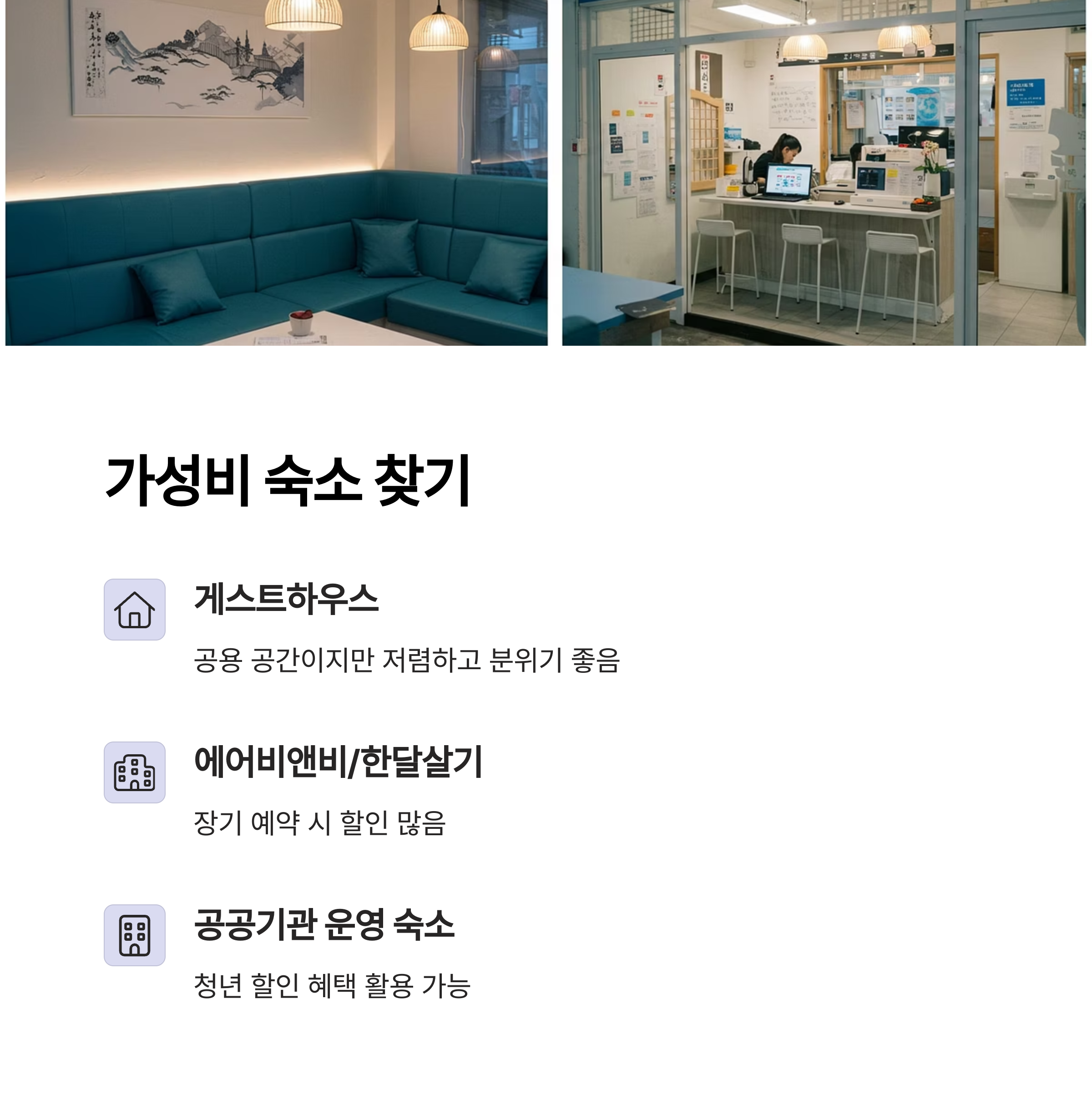 - 청년 할인/공공기관 운영 게스트하우스