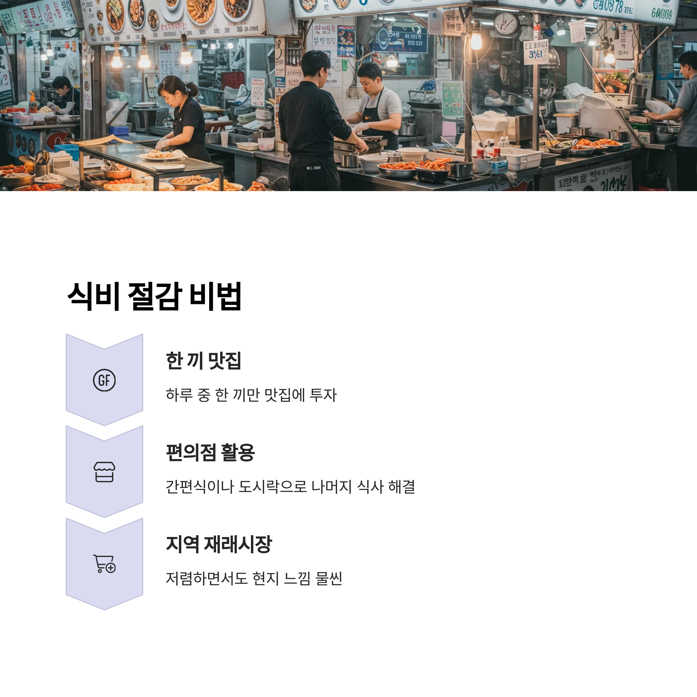 여행 가면 식비가 진짜 무서워요. 특히 요즘 물가 생각하면... 그냥 밥만 세 끼 먹어도 하루에 3만 원은 훅 나가죠. 그래서 저는 “가성비 맛집 + 편의점 조합”을 애용해요. 하루 중 한 끼만 맛집에 쓰고, 나머지는 간편식이나 편의점 도시락, 혹은 마트에서 간단히 사서 숙소에서 해결하죠. 또 요즘은