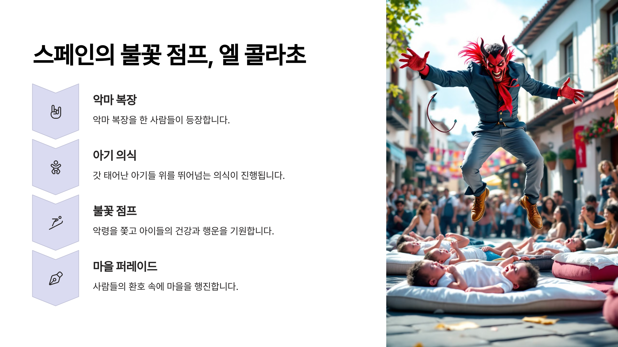 처음엔 믿기지 않았어요. 갓 태어난 아기들 위를 악마 복장을 한 사람들이 불꽃과 함께 뛰어넘는 축제가 있다니요? 스페인 북부의 작은 마을 카스트리요 데 무르시아에서 열리는