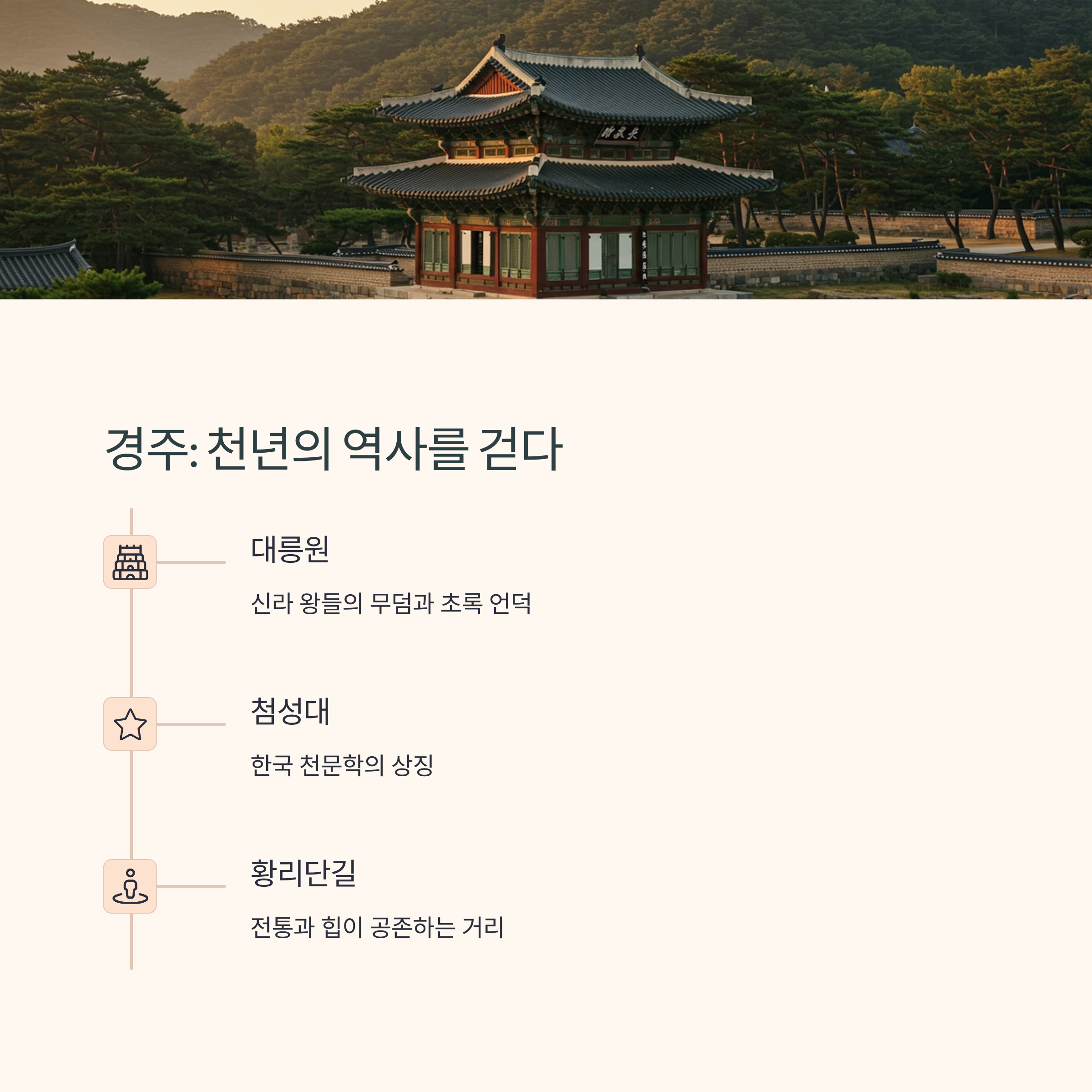 경주는 한국의 로마라고 불릴 만큼 유적지와 고풍스러운 거리들이 매력적인 곳이에요. 실제로 천년의 역사와 마주하며 걷는 그 기분, 직접 가보면 진짜 다릅니다. 요즘은 황리단길이 뜨면서 젊은 감성도 더해졌고요.