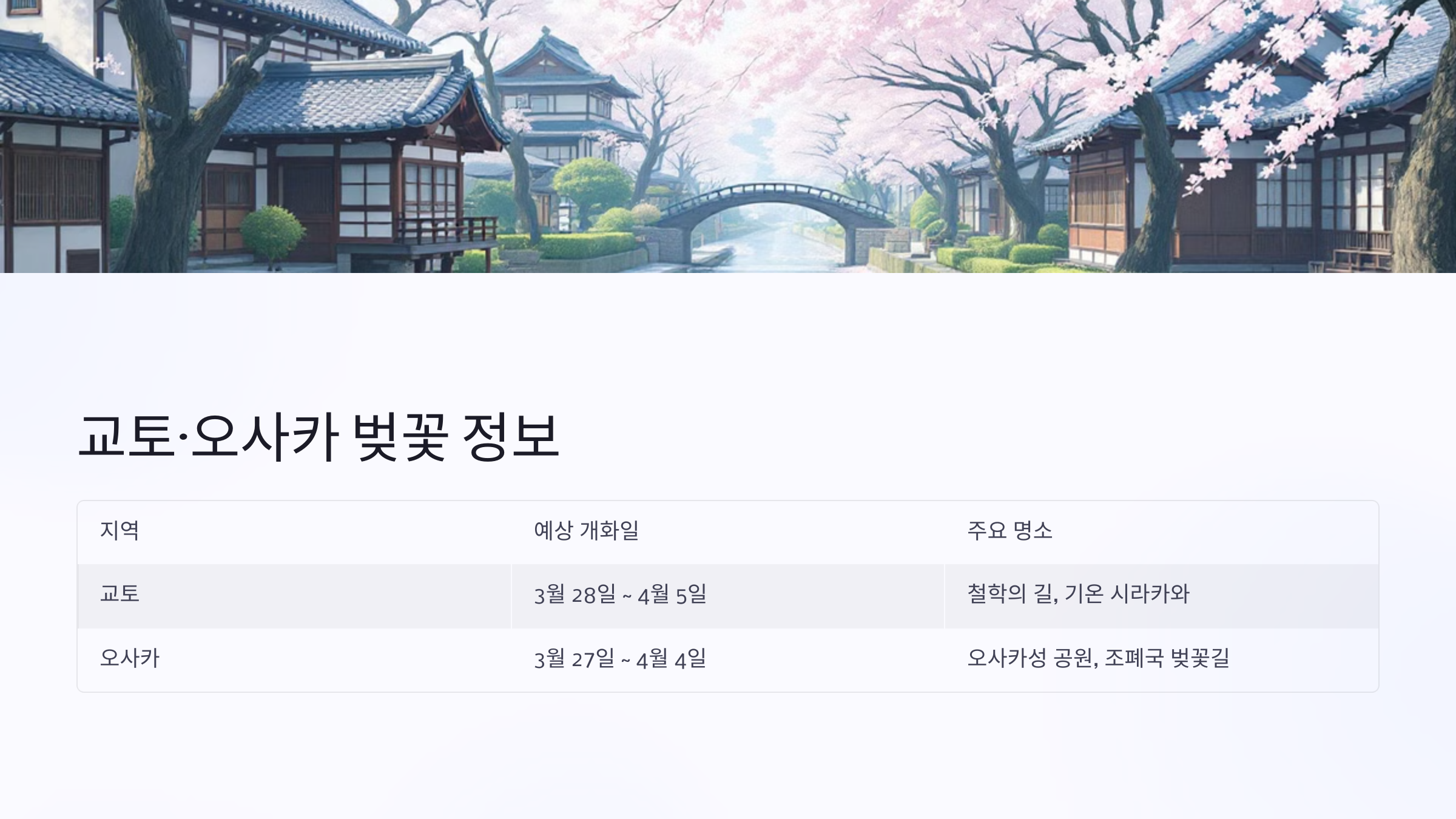 교토·오사카 벚꽃 정보 (테이블 정리)