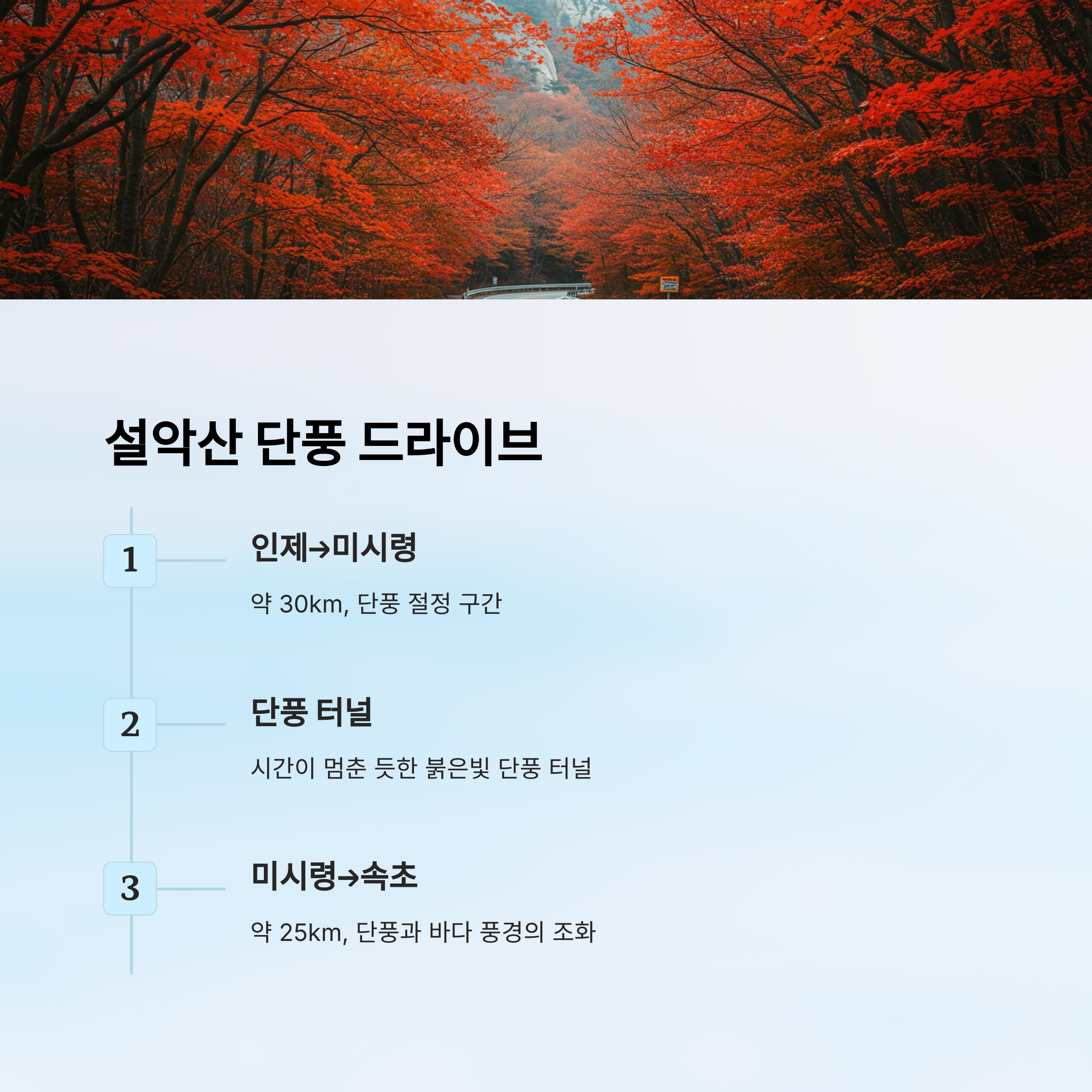 | 인제 → 미시령 | 약 30km | 단풍 절정 구간 |