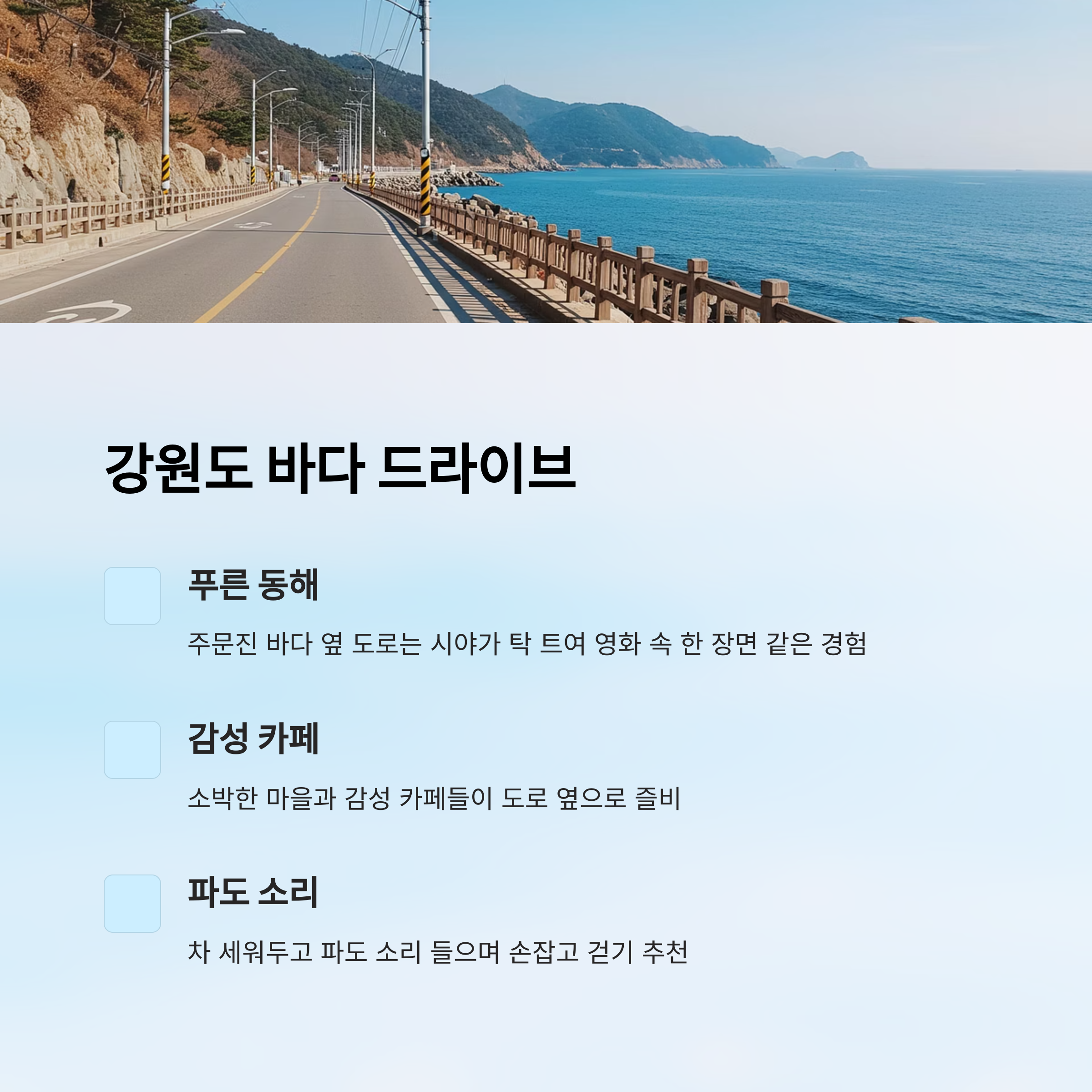 오늘 소개한 드라이브 코스들, 어쩌면 여러분의 연애에 아주 특별한 기억 하나쯤을 만들어줄 수 있을지도 몰라요. 저는 그런 기억들이 쌓여서 결국 '우리만의 이야기'가 된다고 믿거든요. 다음 여행 때는 이번 글에서 추천한 장소 중 한 곳으로, 사랑하는 사람과 함께 멋진 풍경 속으로 떠나보세요. 그리고 혹시 다녀오셨다면, 댓글로 여러분의 드라이브 스토리도 공유해 주세요! 같이 여행 얘기 나누면 정말 재밌잖아요 :)